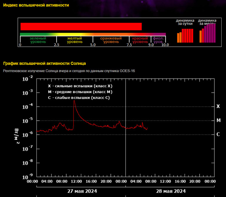 Магнитная буря 28 мая 2024 года: мощная вспышка Х2.8 прогремела на Солнце – когда планету атакует геошторм
