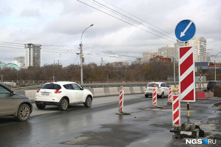 Как писал НГС, основная проблема была на дороге в сторону правого берега. Там появились ямы и провалы в крайнем правом ряду.