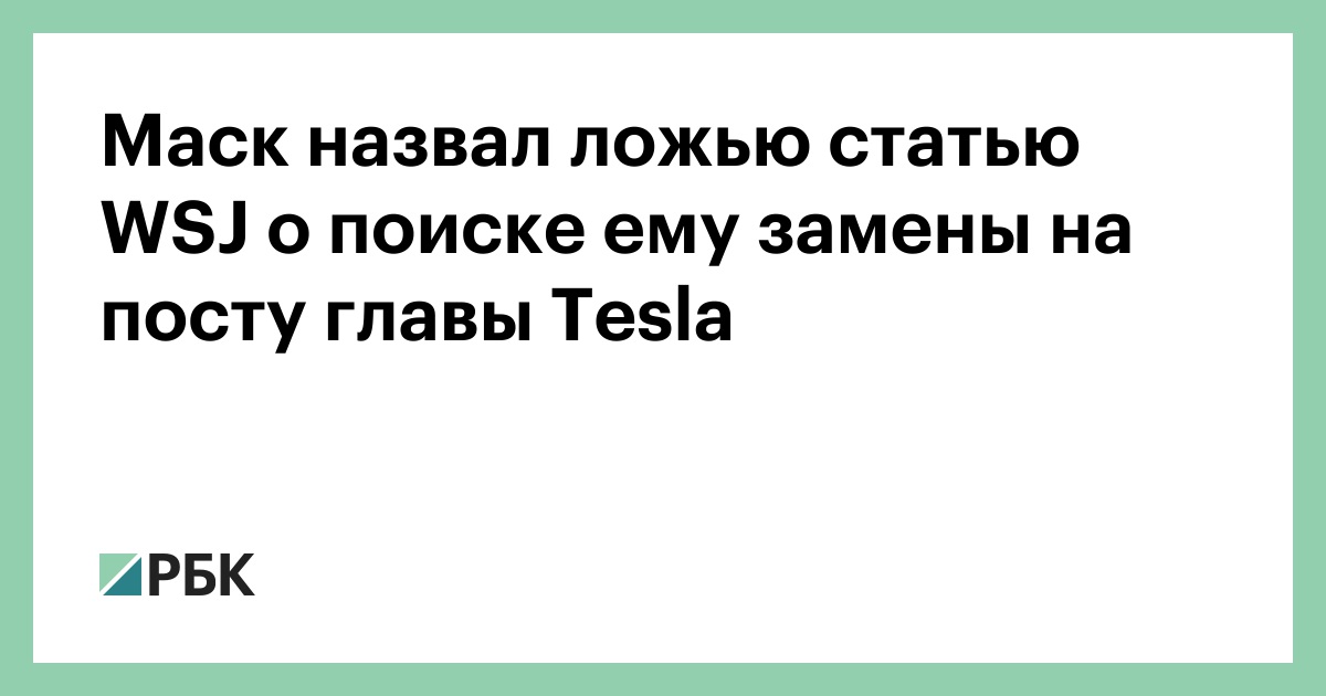 Илон Маск назвал ложной статью The Wall Street Journal о поиске замены ему на посту гендиректора Tesla.