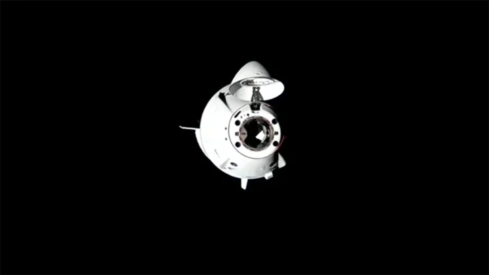 Космический корабль SpaceX Dragon, названный «Endurance», пристыковался к орбитальному комплексу в 7:04 по московскому времени (MSK), когда станция находилась примерно в 420 километрах над Атлантическим океаном.