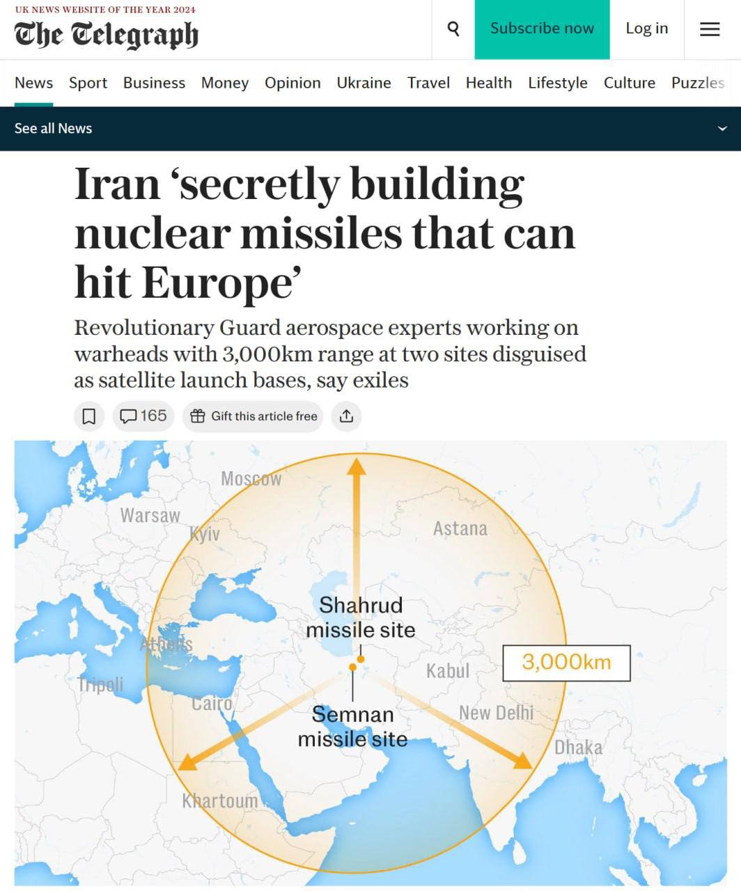 🇮🇷 Иран тайно разрабатывает ядерное оружие, способное достичь Европы