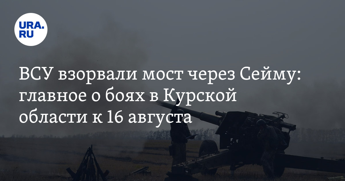 Украинские силы уничтожили мост через реку Сейм и обстреливают мост в селе Званное в Глушковском районе в Курской области. ВС РФ выбила украинских солдат из села Снагость в Кореневском районе области и ведет зачистку территорий. О ракете Украины, упавшей у энергетического объекта России, уголовных делах против ВСУ и потерях киевского режима — в материале URA.RU.