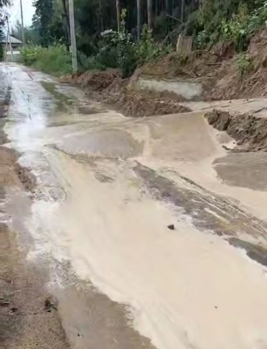 ЧП случилось сегодня, 11 августа, после небольшого дождя. Поток песка вместе с водой хлынул на улицу Набережная. Грязь также попала на территорию частного дома.