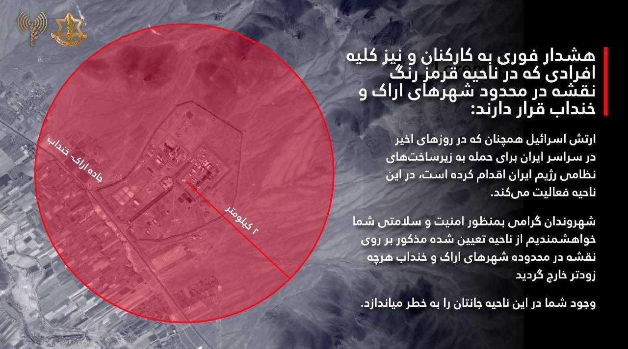 Опубликованное сообщение подразумевает скорое нанесение удара по городу Арак, рядом с которым расположен реактор на тяжёлой воде IR-40, примыкающий к заводу по производству тяжёлой воды в самом городе.
