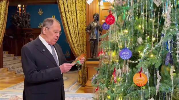 Министр иностранных дел Сергей Лавров принял участие в акции «Елка желаний». Он снял четыре шара с новогодней елки в особняке МИД России. На одном из шаров было желание 17-летней Полины из Воронежа, которая загадала встречу с помощником Президента РФ Владимиром Мединским. Об этом сообщили в пресс-службе МИД РФ в четверг, 25 декабря.