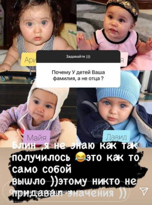 Трое из четверых детей Самойловой от рэпера Джигана носят ее фамилию. Ариела, Лея и Майя — Самойловы, Устименко-Вайнштейн только сын Давид. «А почему девочки Самойловы, а мальчик Устименко?» — спросила одна из подписчиц рэпера. «Потому что любимчик Джигана, наверно», — отозвалась другая. Оксана развеяла все мифы и решила поделится, почему в их семье так. «Это вышло вообще случайно, реально. Я не хотела менять свою фамилию потому, что мне лень доки менять. Потом родилась Ари и мы как-то на автомате ей мою фамилию записали, потом уже всех по накатанной записывали», — написала Оксана в своей соцсети