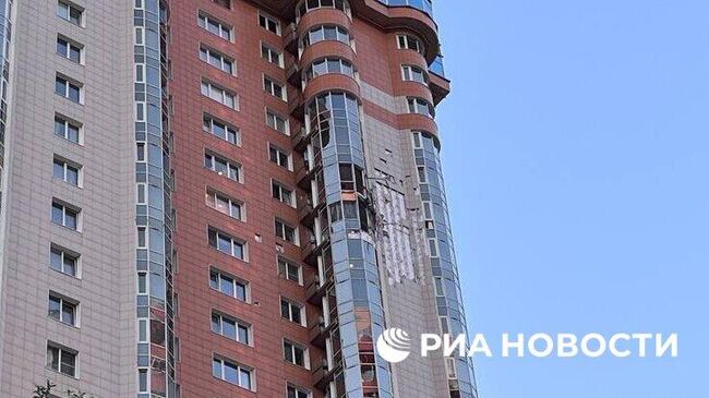 Как передает корреспондент РИА Новости, в результате атаки поврежден фасад дома на уровне нескольких этажей, а также выбиты стекла окон квартир.