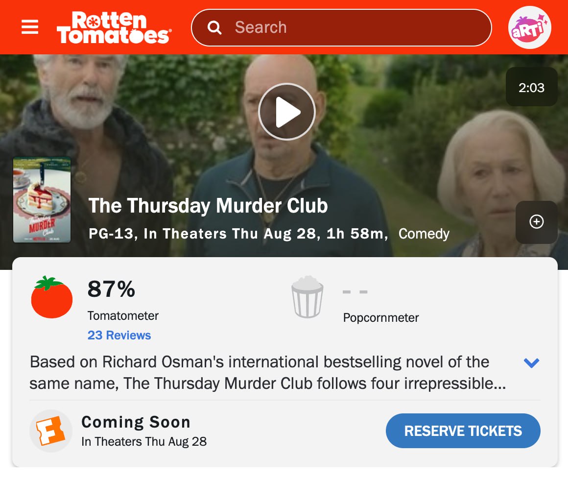 Детектив «Клуб убийств по четвергам» набрал 87% на Rotten Tomatoes. Критики в восторге от игры актеров и британской атмосферы.