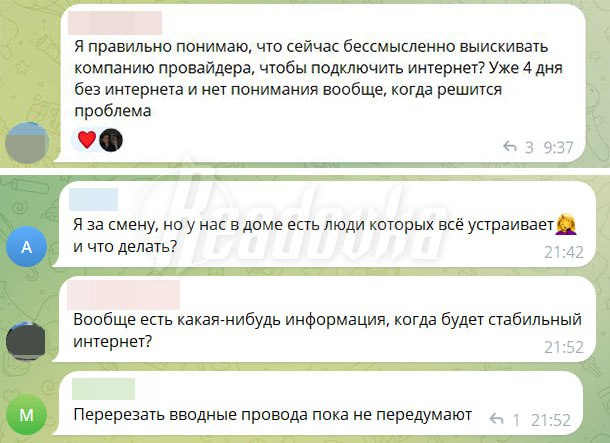 Местные УК тем временем сообщают о «массированной DDOS-атаке», которую ведут украинские хакеры. По словам управляющих, цифровые диверсанты постоянно переключаются с одной цели внутри сети на другую, то пропуская, то блокируя поток данных — из-за этого интернет у людей то появляется, то снова пропадает. При этом некоторые жильцы сомневаются в том, что проблема действительно в хакерах из незалежной, и предполагают, что у АСВТ просто закончились лимиты трафика.