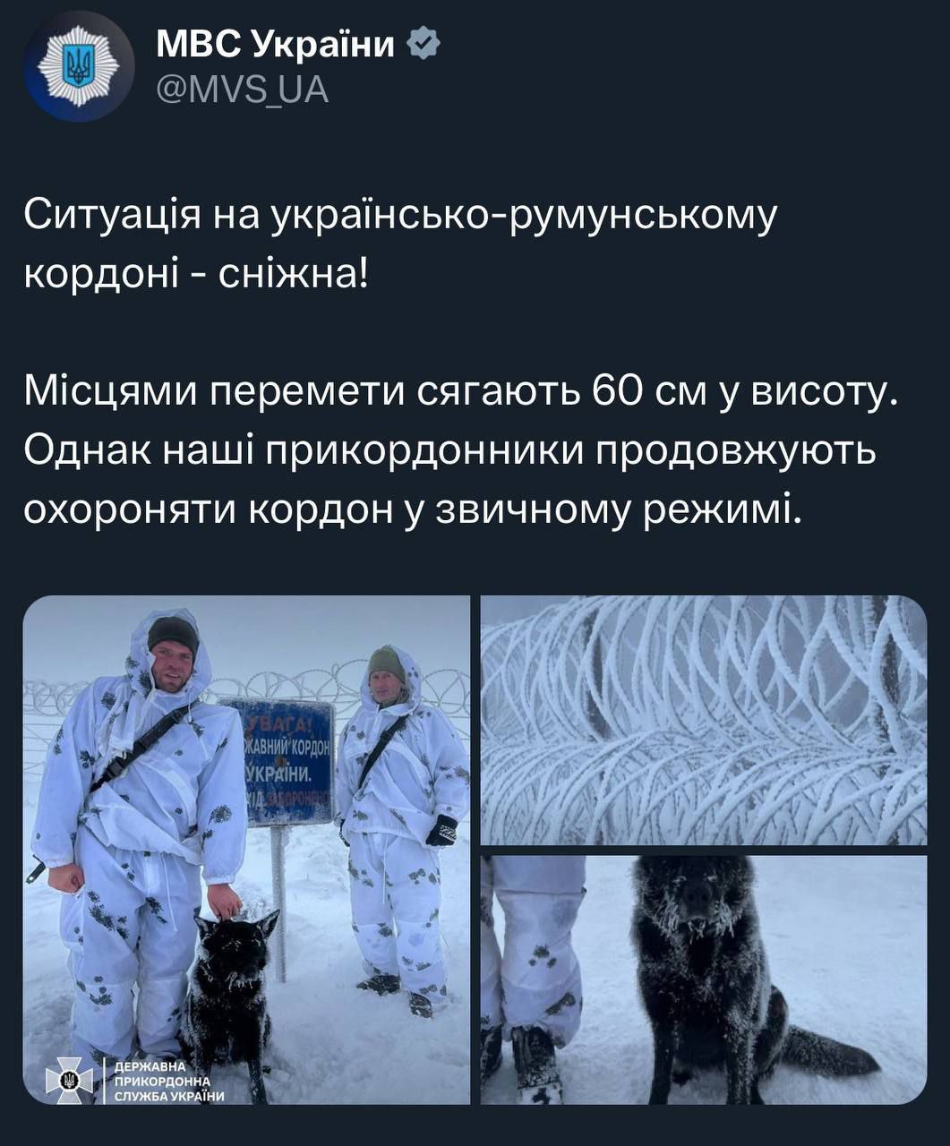На украинско-румынской границе выпал снег, в иных местах — до 60 см в высоту., - сообщает Украина.ру.