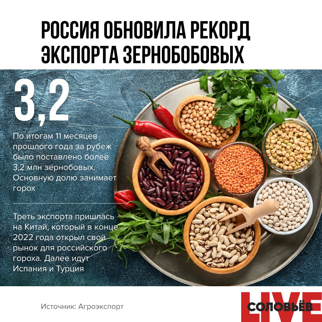 Треть экспорта пришлась на Китай, который в конце 2022 года открыл свой рынок для российского гороха. Далее идут Испания и Турция.