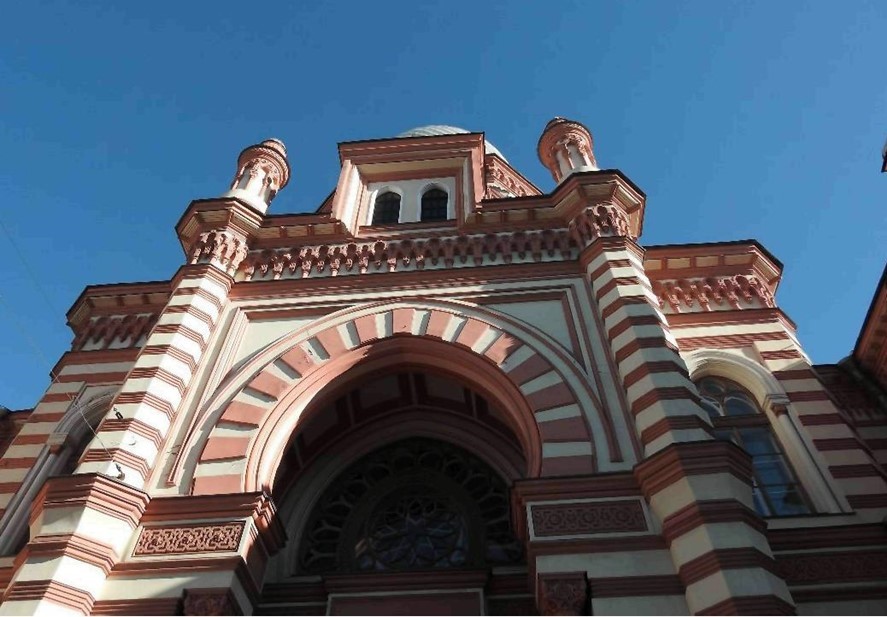 Здание Большой хоральной синагоги в арабо-мавританском стиле было построено в Петербурге в 1893 году по проекту архитекторов Ивана Шапошникова, Льва Бахмана и Алексея Малова.