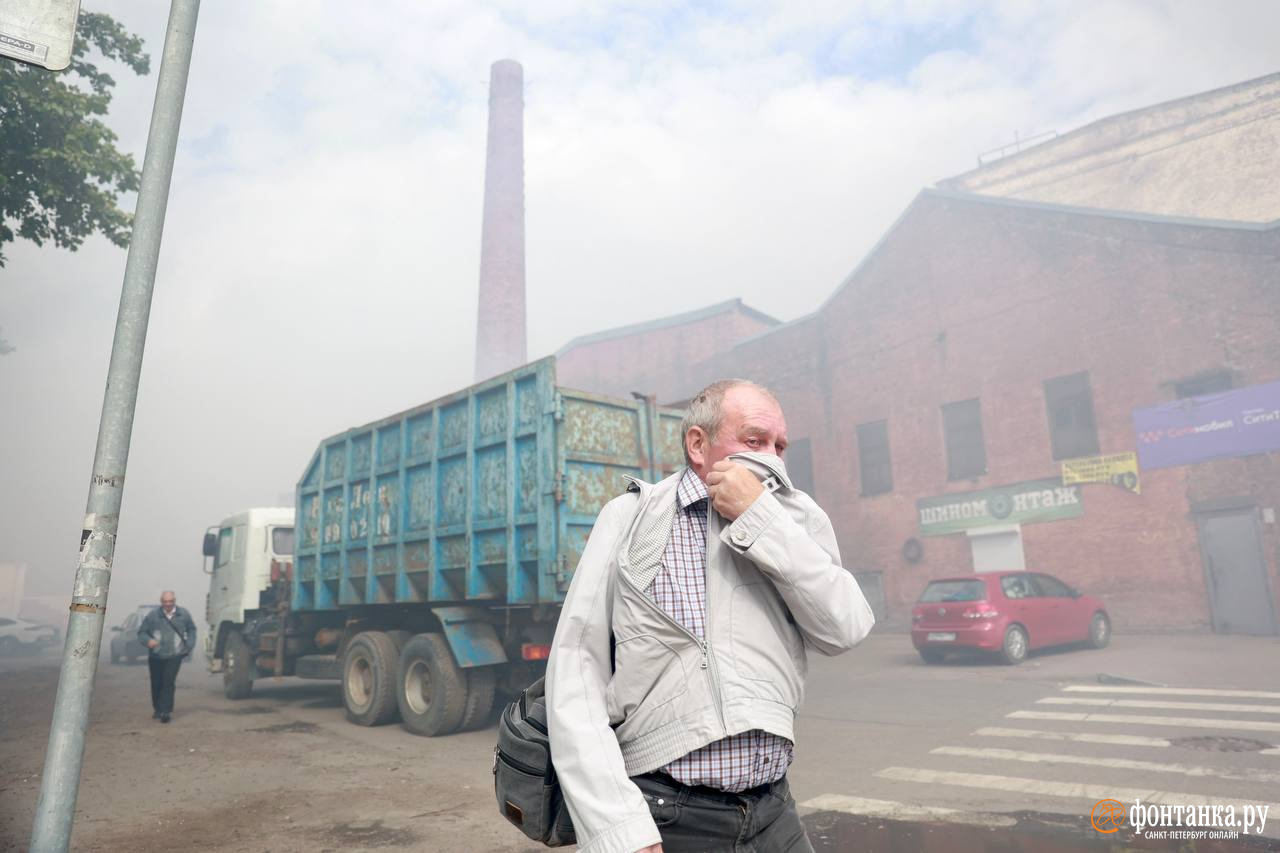 Во время тушения все вокруг было окутано мутной дымкой — и неудивительно: горели автомобильные покрышки на 3500 «квадратах». Через час после сообщения о пожаре ему присвоили повышенный номер сложности №2, к тушению привлекли вертолеты и пожарный поезд.