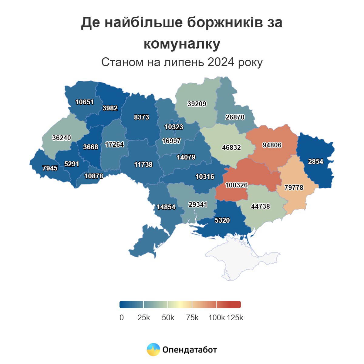 Π‘ Π½Π°ΡΠ°Π»Π° Π²ΠΎΠΉΠ½Ρ Π² Π£ΠΊΡΠ°ΠΈΠ½Π΅ ΠΊΠΎΠ»ΠΈΡΠ΅ΡΡΠ²ΠΎ Π΄ΠΎΠ»Π³ΠΎΠ² Π·Π° ΠΊΠΎΠΌΠΌΡΠ½Π°Π»ΡΠ½ΡΠ΅ ΡΡΠ»ΡΠ³ΠΈ Π²ΡΡΠΎΡΠ»ΠΎ Π½Π° 37%. ΠΠΎΠ»ΡΡΠ΅ Π²ΡΠ΅Π³ΠΎ Π΄ΠΎΠ»ΠΆΠ½ΠΈΠΊΠΎΠ² ΠΏΡΠΎΠΆΠΈΠ²Π°Π΅Ρ Π² ΠΠ½Π΅ΠΏΡΠΎΠΏΠ΅ΡΡΠΎΠ²ΡΠΊΠΎΠΉ ΠΎΠ±Π»Π°ΡΡΠΈ β 100,3 ΡΡΡ ΡΠ΅Π»ΠΎΠ²Π΅ΠΊ, Π½Π° Π²ΡΠΎΡΠΎΠΌ ΠΌΠ΅ΡΡΠ΅ Π₯Π°ΡΡΠΊΠΎΠ²ΡΠΈΠ½Π° β 94,8 ΡΡΡ ΠΈ ΠΠΎΠ½Π΅ΡΡΠΈΠ½Π° β 94,8 ΡΡΡ.