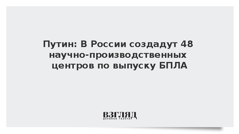 «Работа по проектированию, испытанию и серийному выпуску беспилотников будет вестись на базе особых научно-производственных центров. До 2030 года в разных регионах планируется создать 48 таких площадок», – передает ТАСС слова Путина.