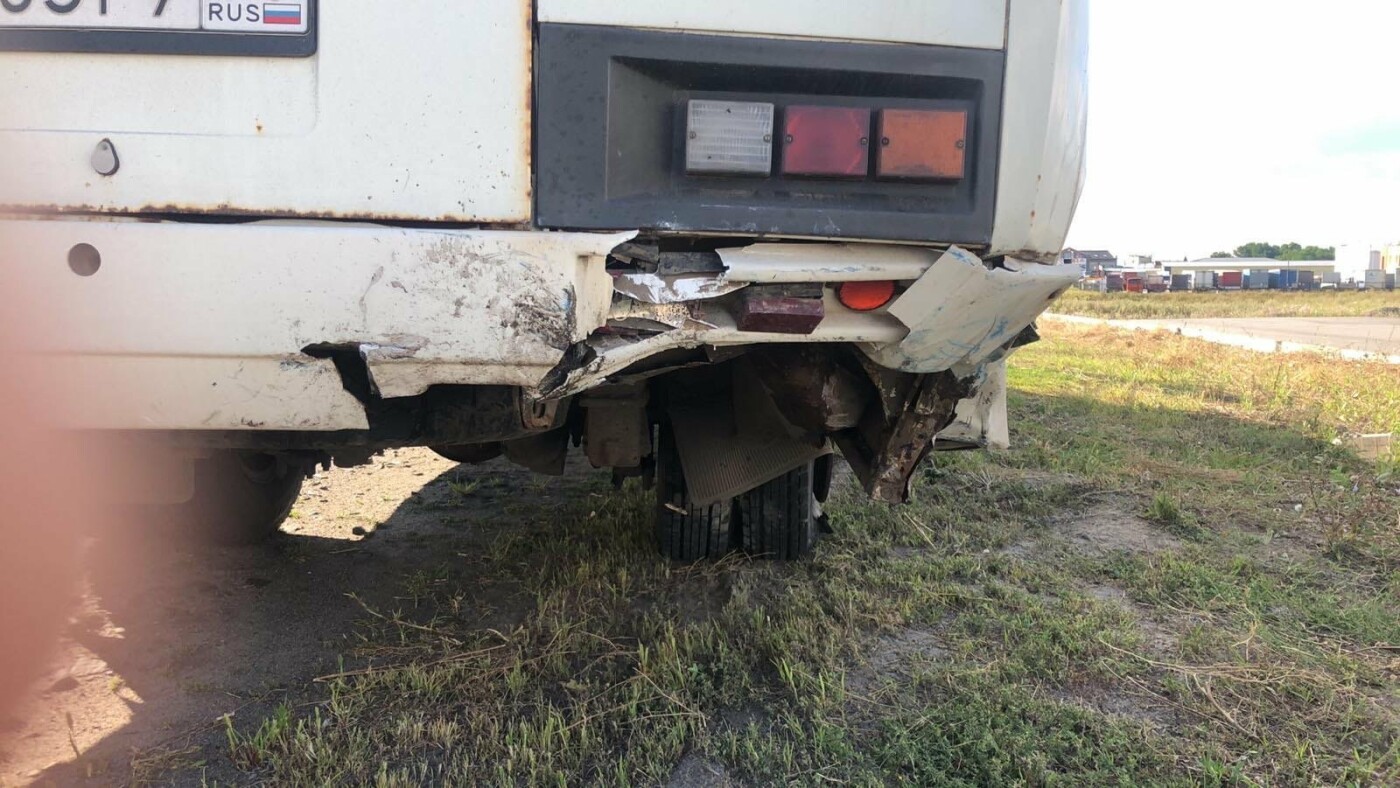 Авария произошла вчера вечером в посёлке Новосадовый. Водитель грузовика "МАН-19422" на ул. Перспективная влетел в двигавшийся в попутном направлении автомобиль "Рено Логан", от удара легковушку отбросило на автобус "ПАЗ"