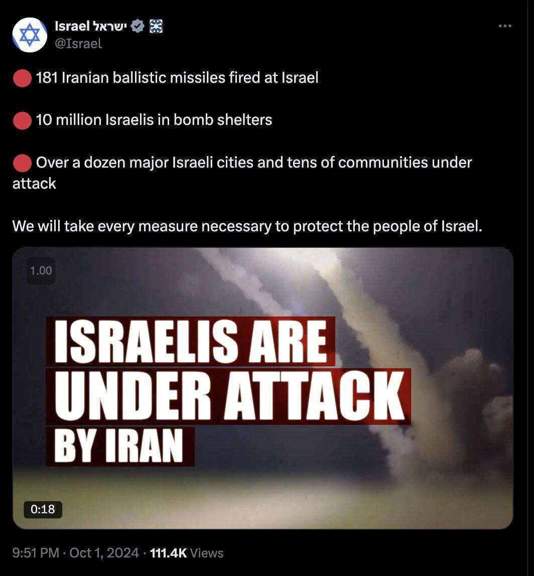 181 иранская баллистическая ракета выпущена по Израилю.