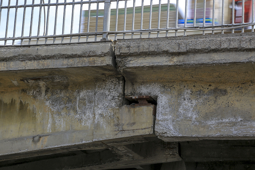 Сейчас строители демонтируют конструкции мостового полотна по левой стороне и барьерное ограждение, чистят трещины, а в мае планируют начать ремонт пролётных строений и тротуаров. Из-за критических дефектов многие работы приходится проводить вручную.
