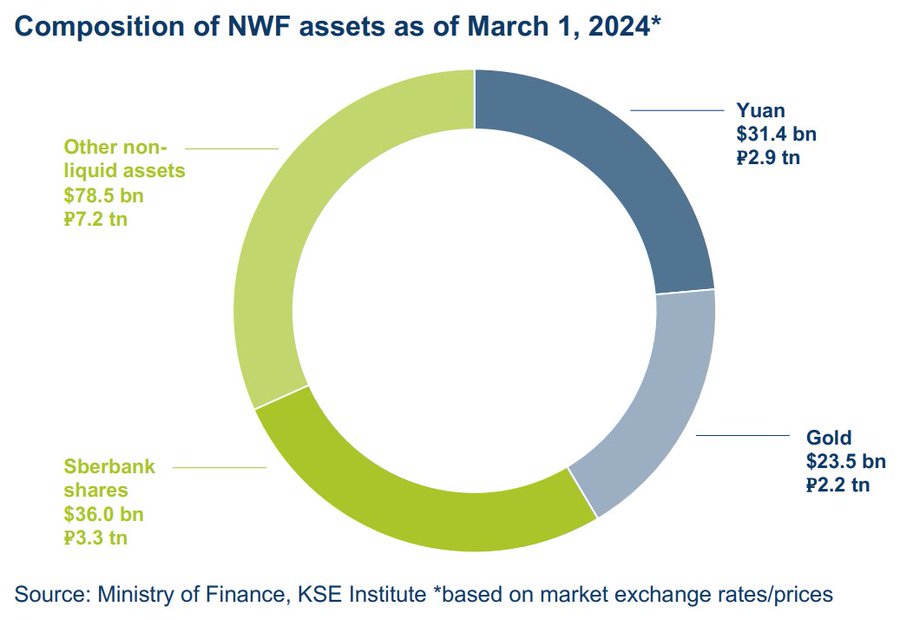 Ликвидных активов в ФНБ России фактически осталось только на 3 трлн руб. Власти истощили более 50% своих ликвидных активов (4,7 трлн) с февраля 2022 года.