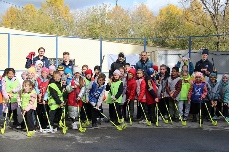Профессиональные спортсмены разработали для детей специальные упражнения, чтобы они могли ознакомиться с флорболом, а также организовали товарищеские матчи.