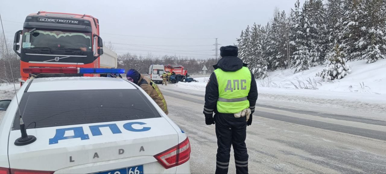 На Урале молодой водитель на полной скорости влетел в фуру. Он вез детей в машине