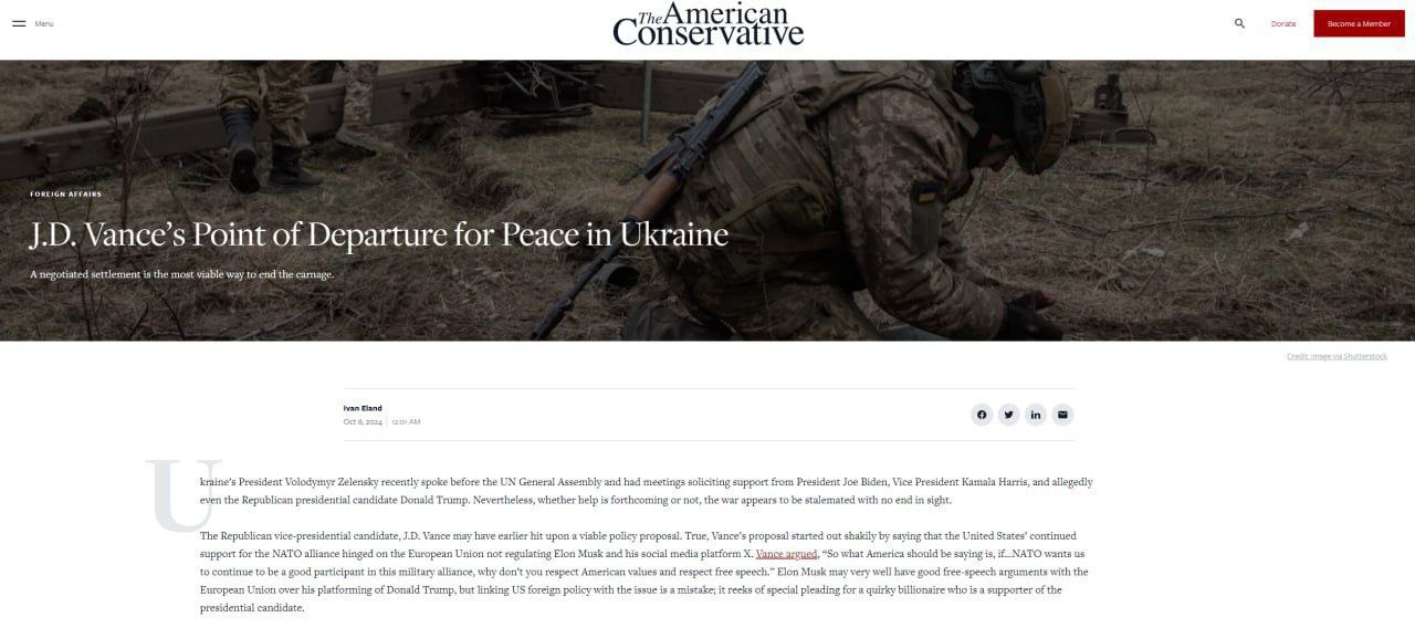 ❗️Потенциальный вице-президент США и соратник Трампа по президентской гонке в США Джей Ди Вэнс представил свой план по прекращению конфликта на Украине: