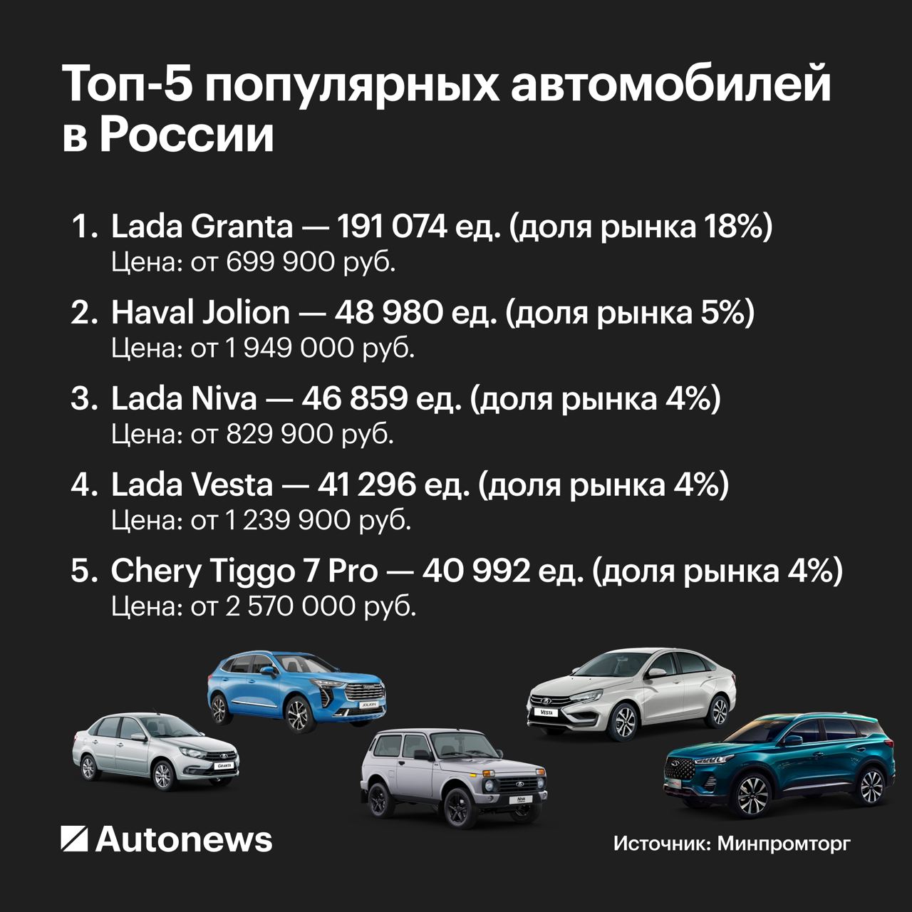 πΠ’ΠΎΠΏ ΡΠ°ΠΌΡΡ ΠΏΠΎΠΊΡΠΏΠ°Π΅ΠΌΡΡ Π½ΠΎΠ²ΡΡ Π°Π²ΡΠΎΠΌΠΎΠ±ΠΈΠ»Π΅ΠΉ Π² Π ΠΎΡΡΠΈΠΈ ΠΏΠΎ ΠΈΡΠΎΠ³Π°ΠΌ 2023 Π³ΠΎΠ΄Π° Π²ΠΎΠ·Π³Π»Π°Π²ΠΈΠ»Π° Lada Granta