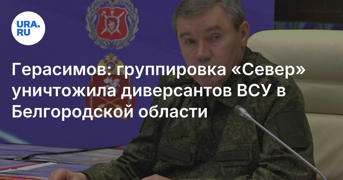 Группировка «Север» завершила ликвидацию украинских диверсионных формирований в окрестностях села Поповка Белгородской области. Об этом сообщил начальник Генерального штаба ВС РФ Валерий Герасимов.