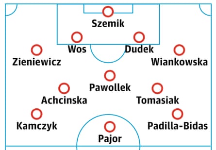 Two fast wingers, Ewelina Kamczyk and Natalia Padilla Bidas, will be ready to pounce on through balls but also drop deep to pick up the ball, together with the star of the show, Pajor. There was a trend in recent games for players to take more opportunities to shoot from range.