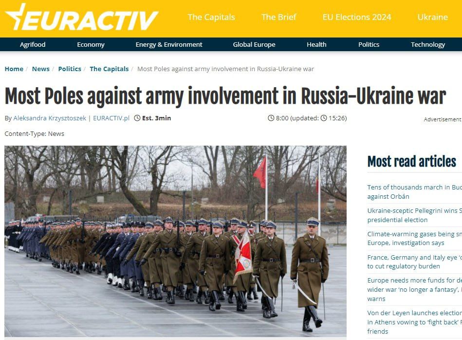 75% поляков против отправления польских войск и войск НАТО в Украину.