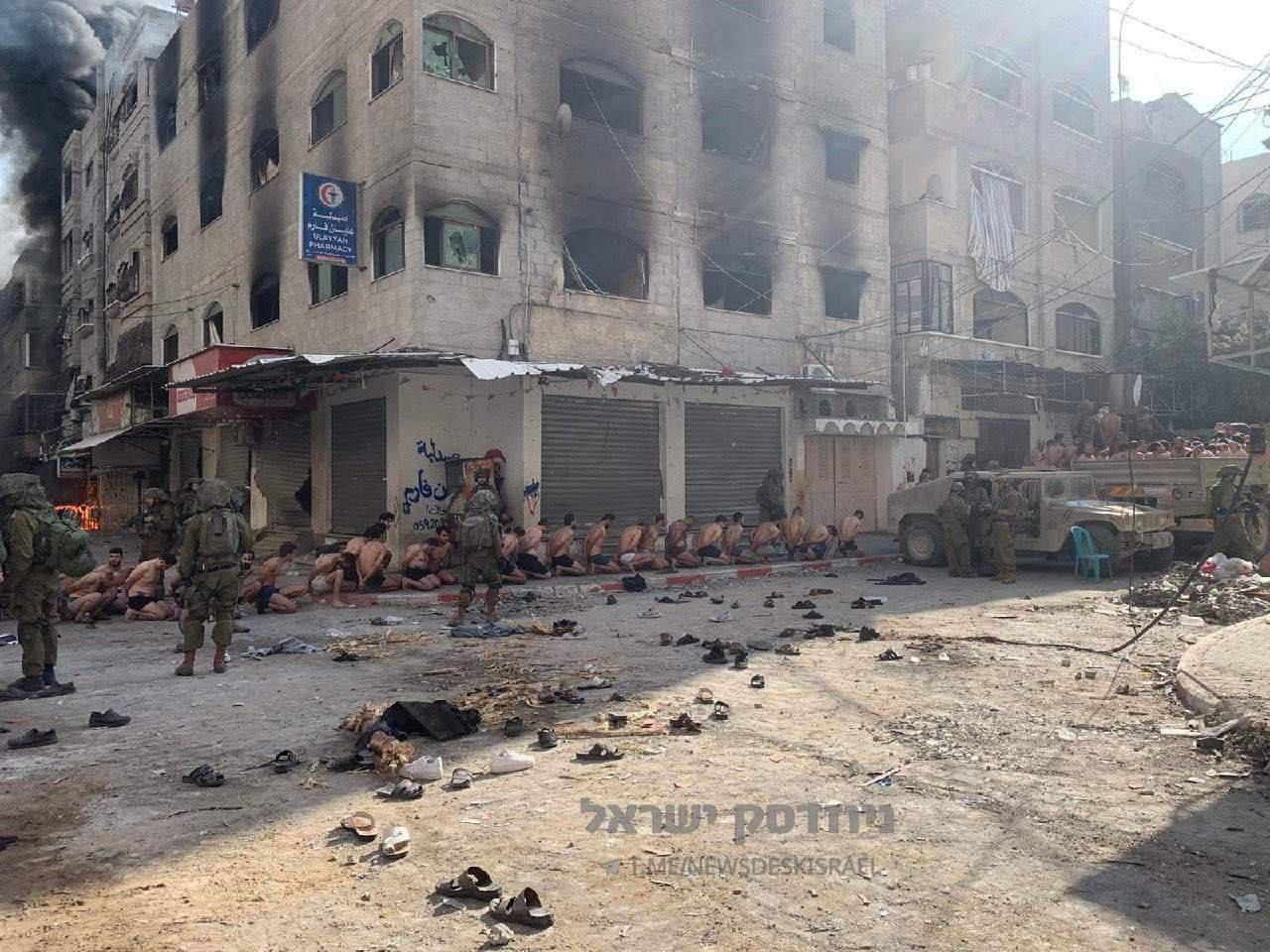 В Сети появились фото десятков полураздетых пленных мужчин-палестинцев, предположительно боевиков ХАМАС, сдающихся израильской армии на севере сектора Газа, — израильские СМИ