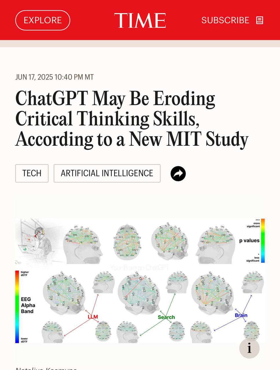 Исследователи предупреждают, что бездумное использование ИИ снижает навыки критического мышления и креативность, и советуют применять такие инструменты только осознанно.