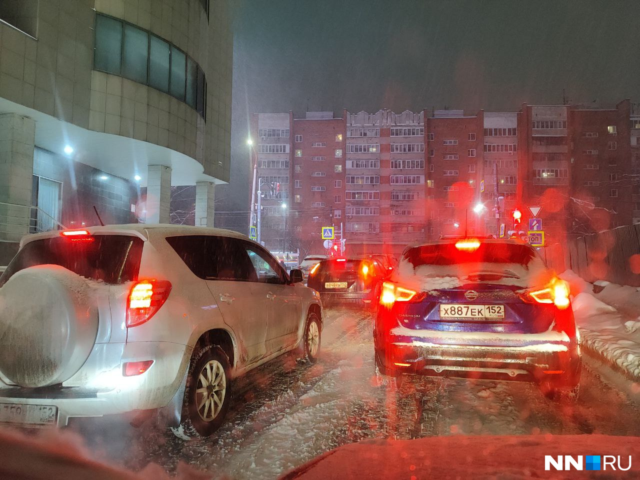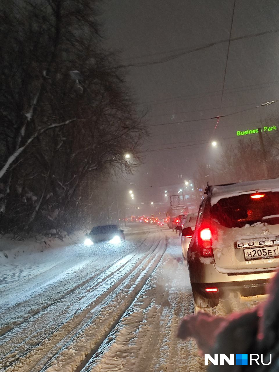 Добила дорожную ситуацию непогода. В середине дня Нижний накрыла метель. За несколько часов выпало приличное количество снега, который не везде успели убрать. Так, наши корреспонденты по пути домой сообщили, что не могут проехать по Нижне-Волжской набережной, улицам Минина, Ванеева и Белинского. Однако снегоуборочной техники на дорогах не видно.