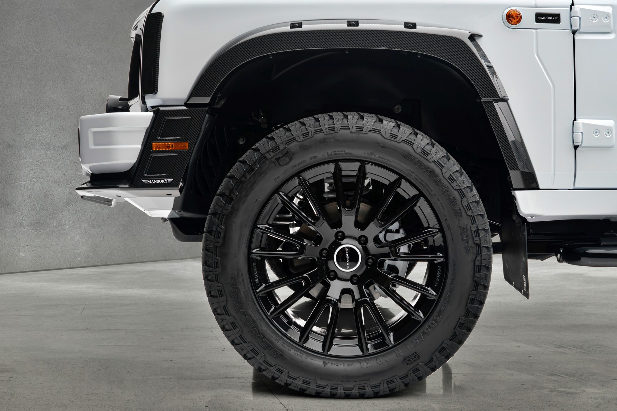 В подвеску Mansory установила новые пружины, увеличившие дорожные просвет на 2 см, а стоковые колёса заменила на собственные ажурные диски Mansory FV.9, обутые в «зубастые» покрышки размерности 305/50 R 20. Пружины подвески и тормозные суппорты окрашены в цвет кузова (в данном случае — в белый), но заказчик может выбрать альтернативные цвета.
