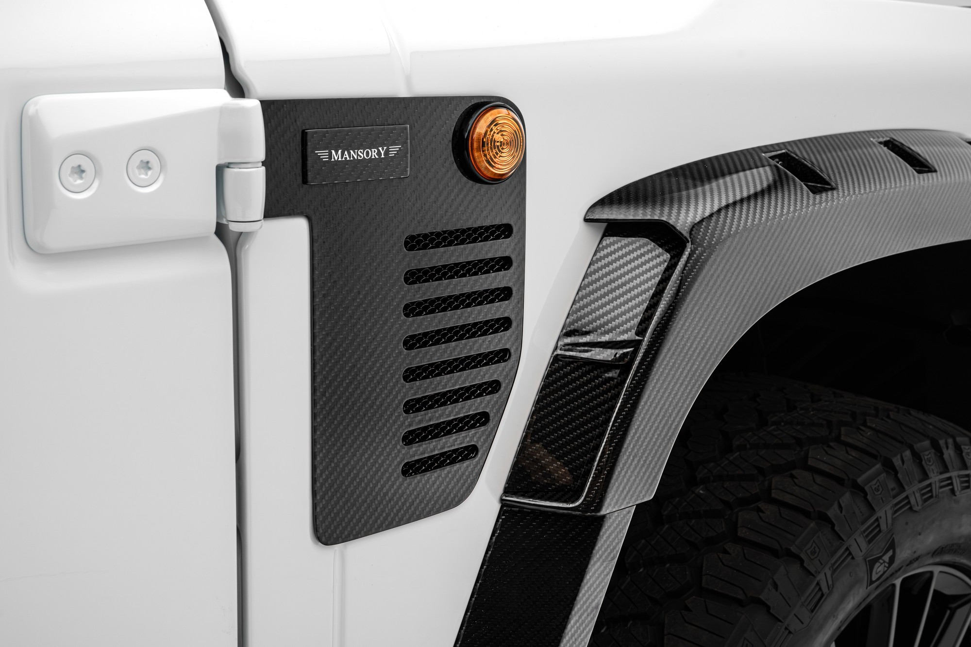 Новый внешний декор, как водится у Mansory, выполнен из углепластика, в комплект входят расширенный передний бампер со встроенными дневными ходовыми огнями и новый воздухозаборник под ним, объёмная накладка на основные фары и решётку между ними, декоративные накладки по бокам от фар и фонарей, расширенные колёсные арки, накладки на пороги, расширенный задний бампер, кофр для запаски, «люстра» в передней части крыши с четырьмя светодиодными круглыми фонарями, спойлер в задней части крыши с узкими светодиодными фонарями в тыловой части, четыре боковых светодиодных фонаря.
