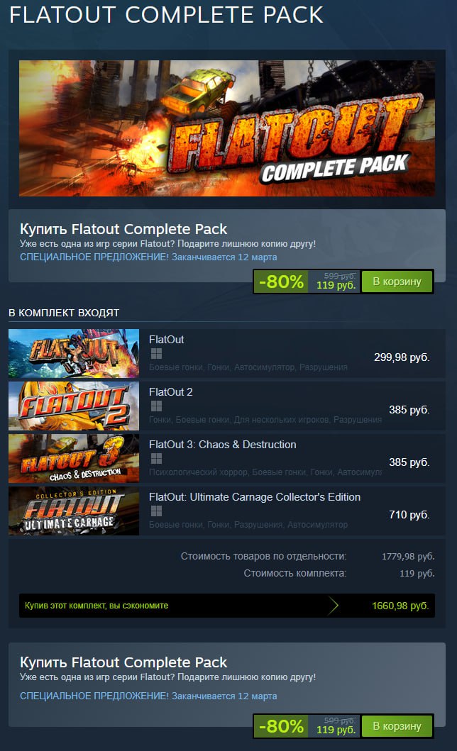 Распродажа продлится до 12 марта, цена вопроса 119 рублей: store.steampowered.com/sub/12467