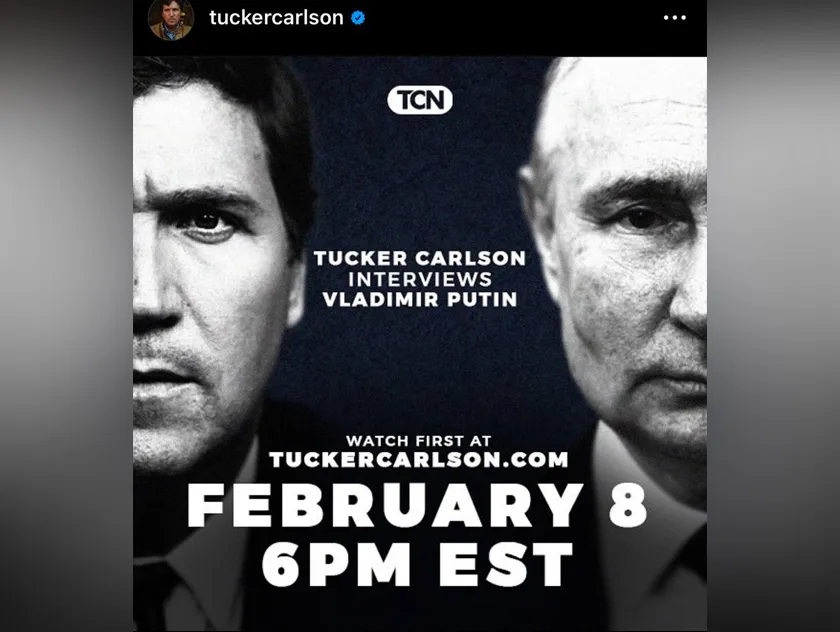 "Такер Карлсон интервьюирует Владимира Путина <…> 8 февраля в 06:00 вечера по восточному времени (02:00 мск 9 февраля — Прим. Лайфа)", — говорится в сообщении.