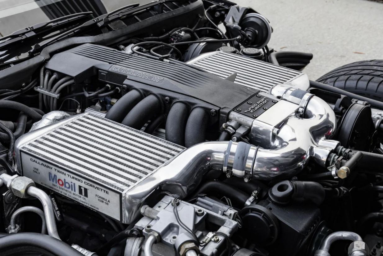 Понятное дело, что в рамках того, что официальные дилеры отгружали клиентам в своих салонах, мощность должна была быть подкреплена как минимум надежностью, а как максимум – каким-то комфортом ежедневного использования. Да и заголовки в духе «18-летний подросток за рулем Chevrolet Corvette не справился с управлением и улетел в Гудзон» меньше всего нужны были маркетологам General Motors. А вот Каллауэй после работы над HH V8 на конкретных цифрах с диностенда убедился, какие чудеса может демонстрировать ДВС, если на впуск подкинуть пару атмосфер избыточного давления. Так мир увидел Callaway Sledgehammer Corvette. Основательно перетряхнув все потроха 5,7-литрового LT1 и повесив на каждую ГБЦ по «улитке» Turbonetics с интеркулером, Ривз сотоварищи сняли со смолл-блока совершенно невменяемые для конца 80-х 898 сил. Что на выходе? 3,9 секунды до 60 миль/ч и четверть мили с результатом 10,6 секунды.