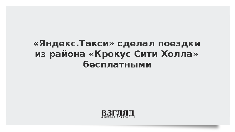 «Как сообщили в компании «Яндекс», «Яндекс Такси» сделали бесплатными для пассажиров все поездки из района «Крокус Сити Холл». За оплаченные ранее поездки из этого района сервис вернет деньги в полном объеме в течение следующих двух дней», – говорится в официальном Telegram-канале ведомства.