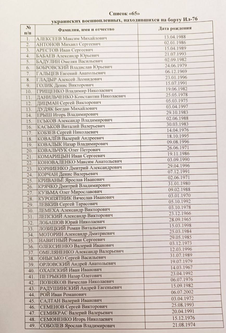 Маргарита Симоньян2 года назад ФОТО ФОТО Список украинских военнопленных на борту разбившегося ИЛ-76. Информация на этой странице взята из источника: https://t.me/margaritasimonyan/13603Темы и тегиПроисшествия и Катастрофывоеннопленный список украинский борт ил-76