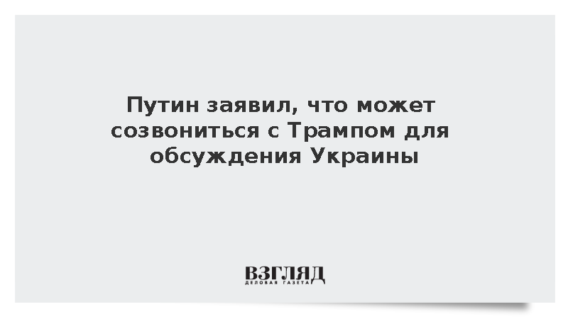 Президент России Владимир Путин заявил, что может связаться с американским коллегой Дональдом Трампом по теме украинского урегулирования.