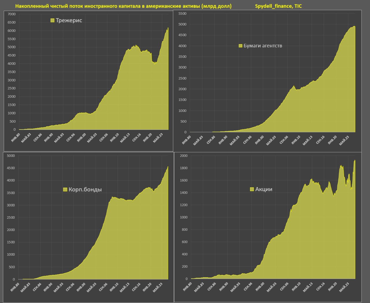Нельзя сравнивать 2025 с 2018-2019. Тогда потребность в иностранном капитале была ограничена из-за относительно устойчивого счета текущих операций и низкого дефицита бюджета, но сейчас двойной дефицит, который рвет все рекорды в условиях открытого противостояния с ФРС (значит без QE и снижения ставок) и в отсутствии буфера устойчивости у резидентов США (все избыточные резервы 2020-2021 исчерпали в 2022-2024).