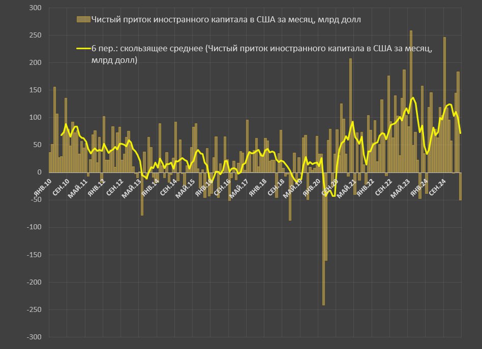 Сейчас чистый приток иностранного капитала необходим в объеме 1.2-1.4 трлн в год (примерно столько же было с начала 2023 по середину 2025).
