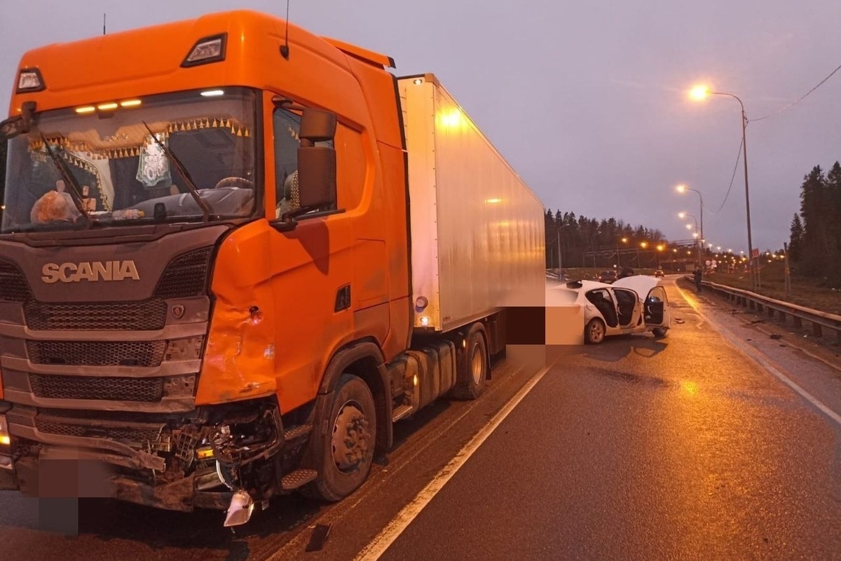Ранее тягач при обгоне вылетел с дороги и упал на бок на трассе «Кола».