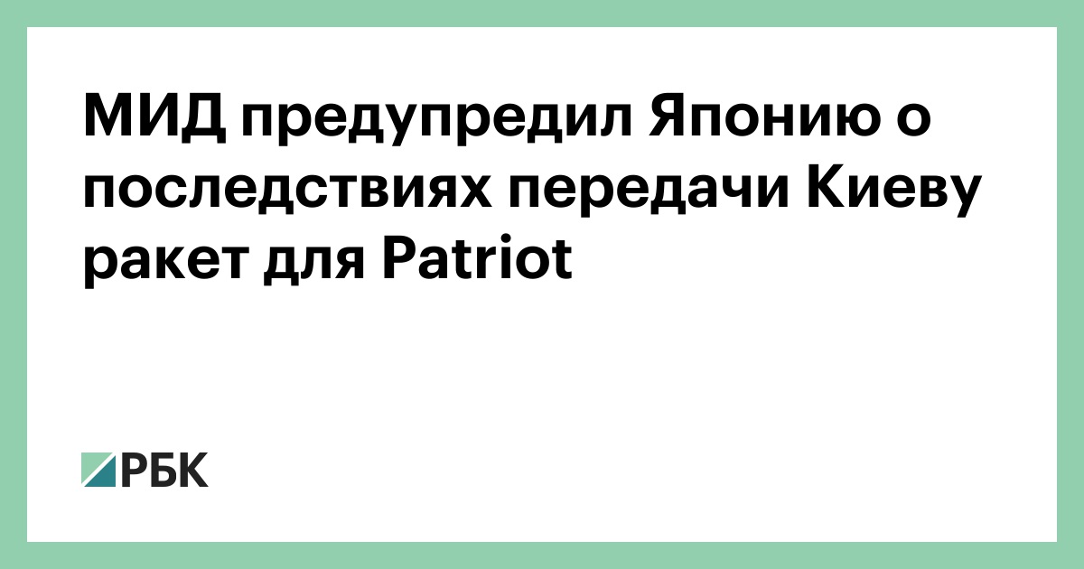 «Когда в декабре 2023 года администрация Фумио Кисиды добилась законодательного смягчения национальных правил экспорта продукции военного назначения — ради поставок производимых в стране по лицензии ракет для ЗРК Patriot Вашингтону, — прямо предупредили японскую сторону через посла в Москве Муто, что не сомневаемся насчет конечного выгодоприобретателя такого решения — киевского режима», — сказал Жесткий.