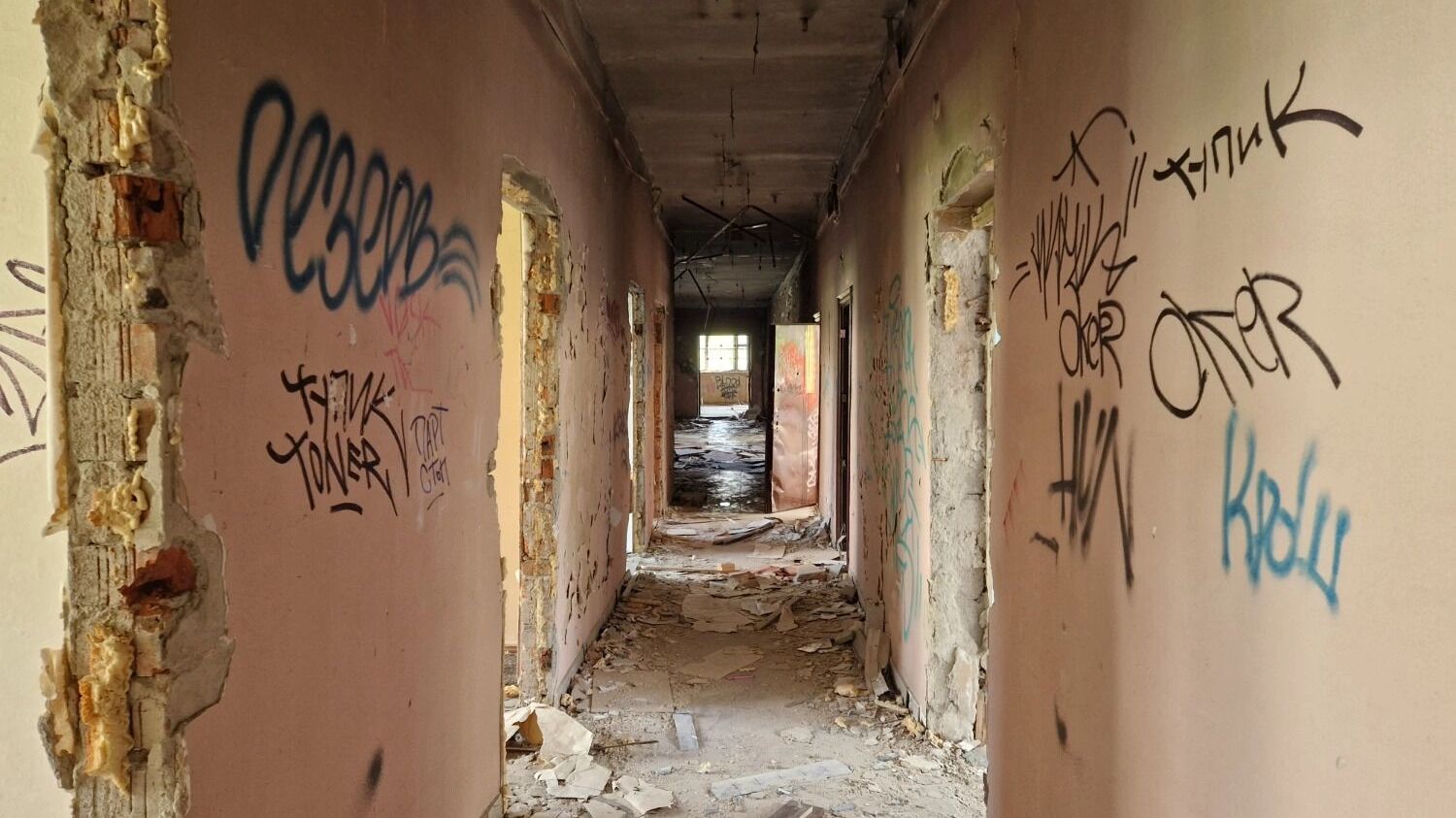 Кажется, что уже нет ни одной стены и ни одного кабинета, который бы сохранил хоть какую-то историю своего бытия. Повсюду граффити и следы поджогов.
