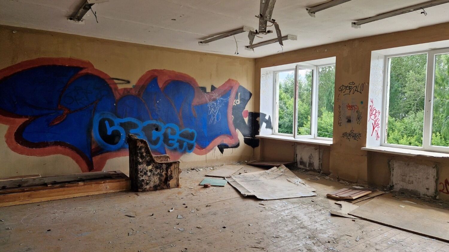 Ни для кого не секрет, что эту локацию облюбовали подростки и другие горожане. Постепенно они выбили в здании все окна, выломали двери, да и в целом разрушили все внутреннее оснащение.