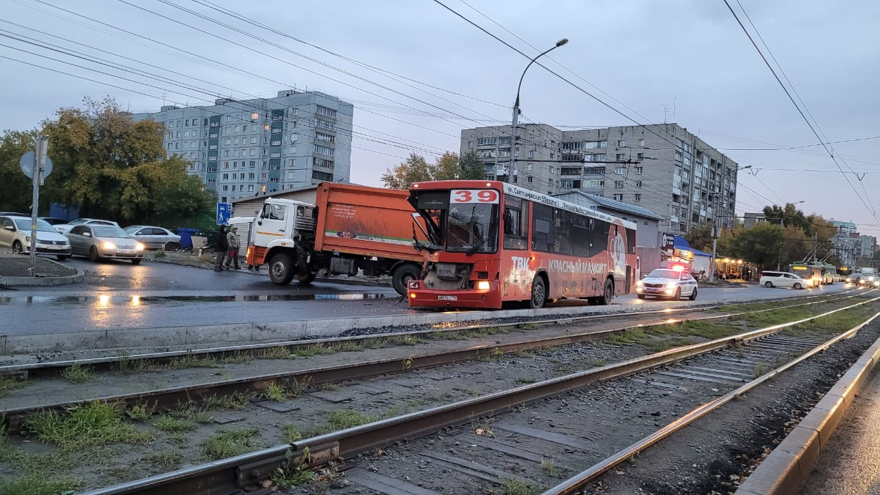Утром 28 сентября в Новосибирске столкнулись автобус №39 и грузовик. Авария произошла на улице Учительской в Калининском районе.