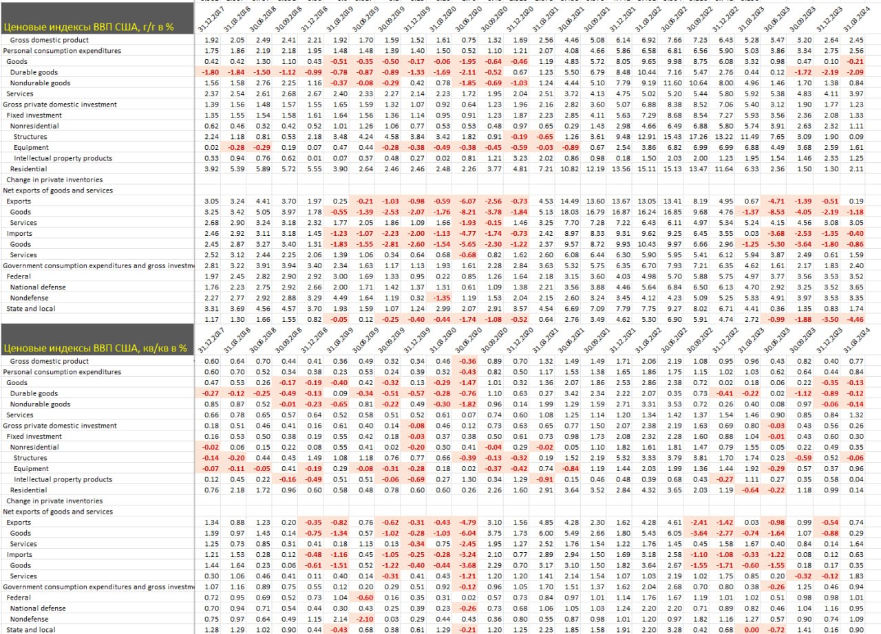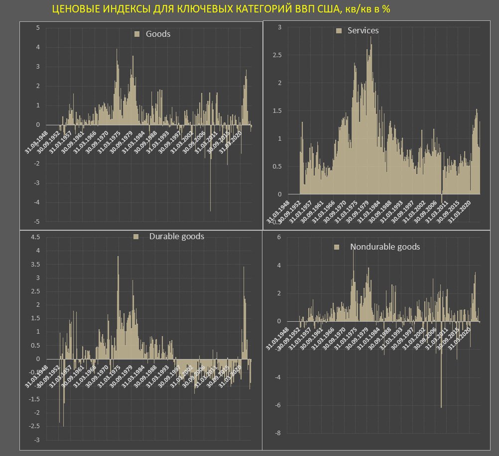 Ценовое давление не является фронтальным, но концентрируется на емких сегментах экономики США: услуги формируют почти 46% от ВВП, а госпотребление еще 17.4%, т.е. по меньшей мере для 63% ВВП ценовые индексы растут вдвое выше нормы.