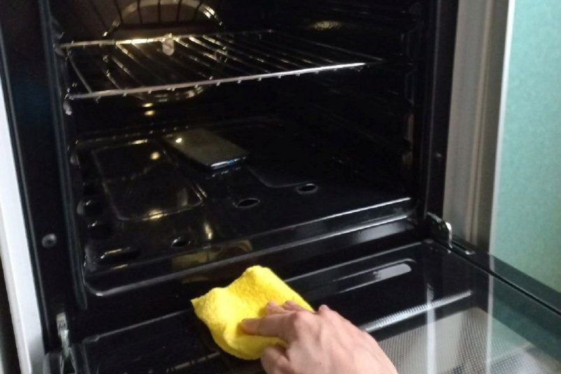 Если все совсем запущено, то следует рассыпать в духовке соль. Разогреть ее до 100 градусов. Как только солевые кристаллы потемнеют, духовку необходимо выключить и отчистить все щеткой. Промыть губкой с водой и протереть салфеткой из микрофибры.